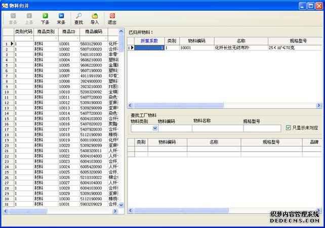 企業(yè)在進(jìn)出口時(shí)是按照海關(guān)備案的品名(商品資料)來報(bào)關(guān)的,但在實(shí)際收發(fā)貨登記中卻是按照工廠的品名(工廠物料)來記錄,因此有必要建立這兩者之間的歸并和對(duì)應(yīng)關(guān)系。單個(gè)工廠物料,如果要對(duì)應(yīng)的某個(gè)報(bào)關(guān)商品,可以直接在基礎(chǔ)資料中的工廠物料管理中設(shè)置,這里的功能與其類似,所反映的數(shù)據(jù)其實(shí)是相同的,只是提供了一個(gè)更集中方便的對(duì)應(yīng)管理功能。如圖所示的材料商品ID1016導(dǎo)線,進(jìn)出口時(shí)只有一個(gè)品名,報(bào)關(guān)單位是千克,但是在實(shí)際工廠管理中的導(dǎo)線卻包括很多種規(guī)格,單位用個(gè),因此有必要給每種規(guī)格的導(dǎo)線定義物料編碼,并和海關(guān)的商品ID1016進(jìn)行對(duì)應(yīng),還要設(shè)置折算系數(shù)(折算系統(tǒng)=報(bào)關(guān)單位數(shù)量/工廠單位數(shù)量)。