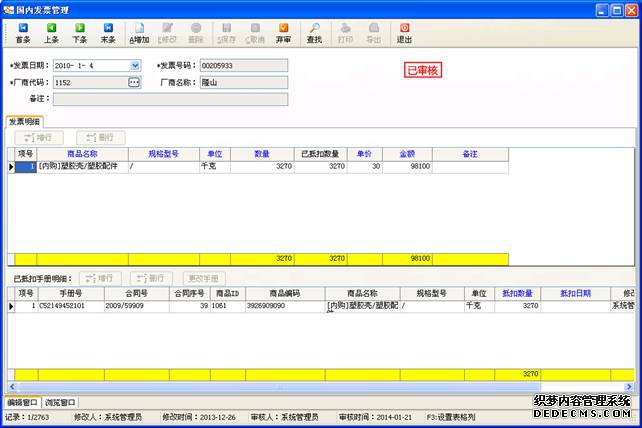 操作路徑:加工貿(mào)易->國(guó)內(nèi)發(fā)票管理國(guó)內(nèi)發(fā)票管理是手冊(cè)內(nèi)購(gòu)料件時(shí)發(fā)票的管理和抵扣情況處理。