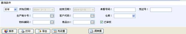 自定義時間、單據(jù)號碼、憑證號、生產(chǎn)制令號、客房代碼、倉庫、物料編碼、商品ID、審核標志查找生產(chǎn)制造令明細表。